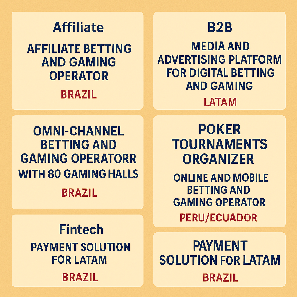 Portfolio of LATAM opportunities including affiliate operators, ad‑tech platforms, B2C operators…