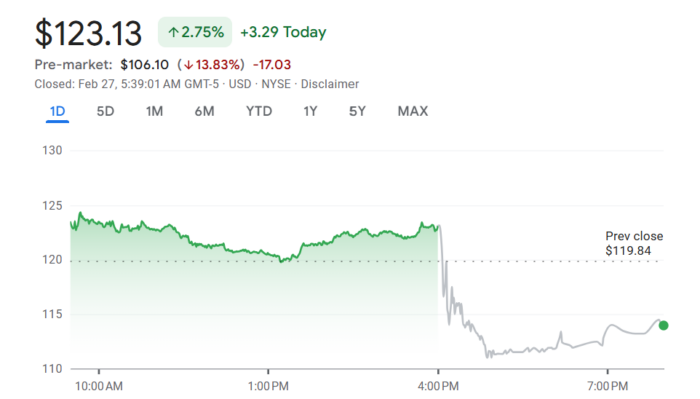 Flutter Entertainment CEO Peter Jackson and CFO Rob Coldrake fielded analyst questions for around 45 minutes yesterday evening, 26 February, as the operator’s stock slumped in after-hours trading in New York. Missed Wall Street consensus for 2025 estimates and softer EBITDA growth forecast for 2026 saw the stock down more than 7% after the closing bell rang. The stock has slipped further in pre-market.