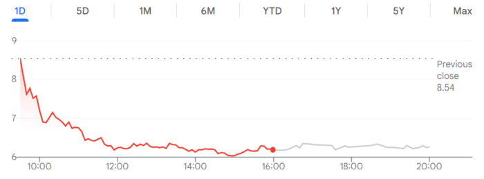 The firm’s stock has slid to $6.19 (£4.56) a share after announcing the acquisition worth an initial $900m in cash and stock, was made public at 6am ET.