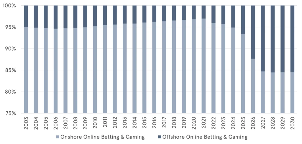 “We have little doubt that, if the direction of these forecasts materialise, then a reduction in the onshore market will be viewed by politicians as a major victory,” H2GC said. “Not only have they been able to curb the size of the onshore online gambling industry, but they have increased tax revenue at the same time.