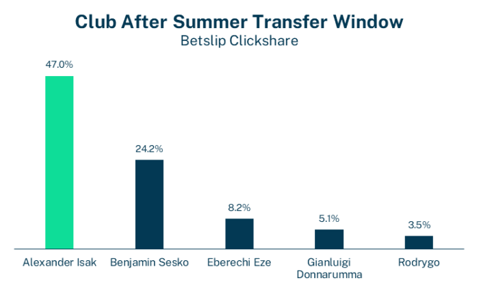 Swedish striker Isak’s future was a core reason behind the attention, driving 47% of all clicks in the market.
