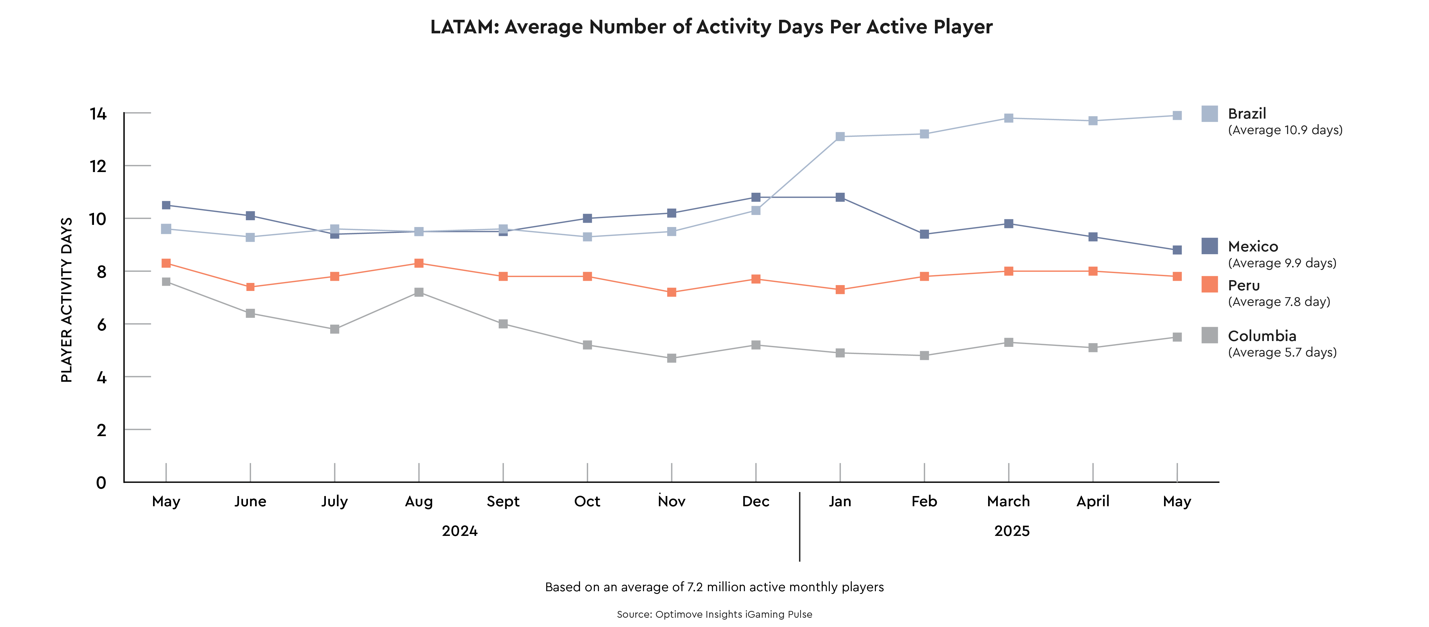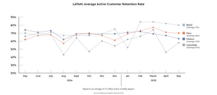 • Brazil showed the strongest growth in player engagement and retention since January 2025:
