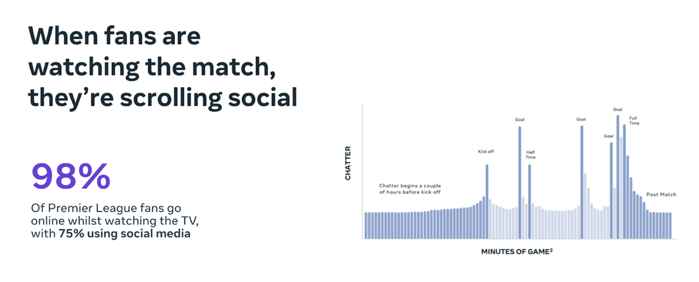The days of fans simply watching matches on TV are over. While they enjoy the game live, they’re also interacting with clubs, creators and friends on platforms such as Facebook, Instagram, WhatsApp and Threads. This multi-screen behaviour fuels cross-platform engagement, helping you build real-time communities that drive both awareness and conversion.