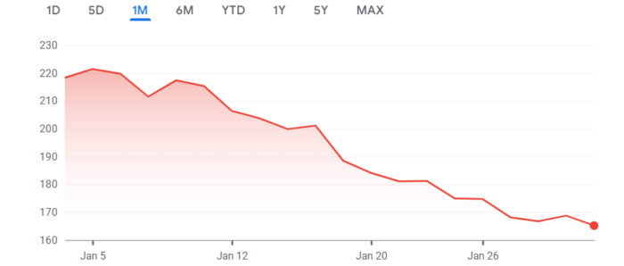 30 January closing: $165.15