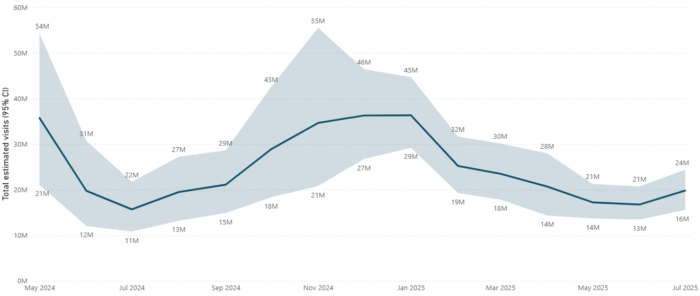 The visits, at the upper bound of estimations (which the GC said was a 95% confidence interval), peaked in November 2024 at 55 million.